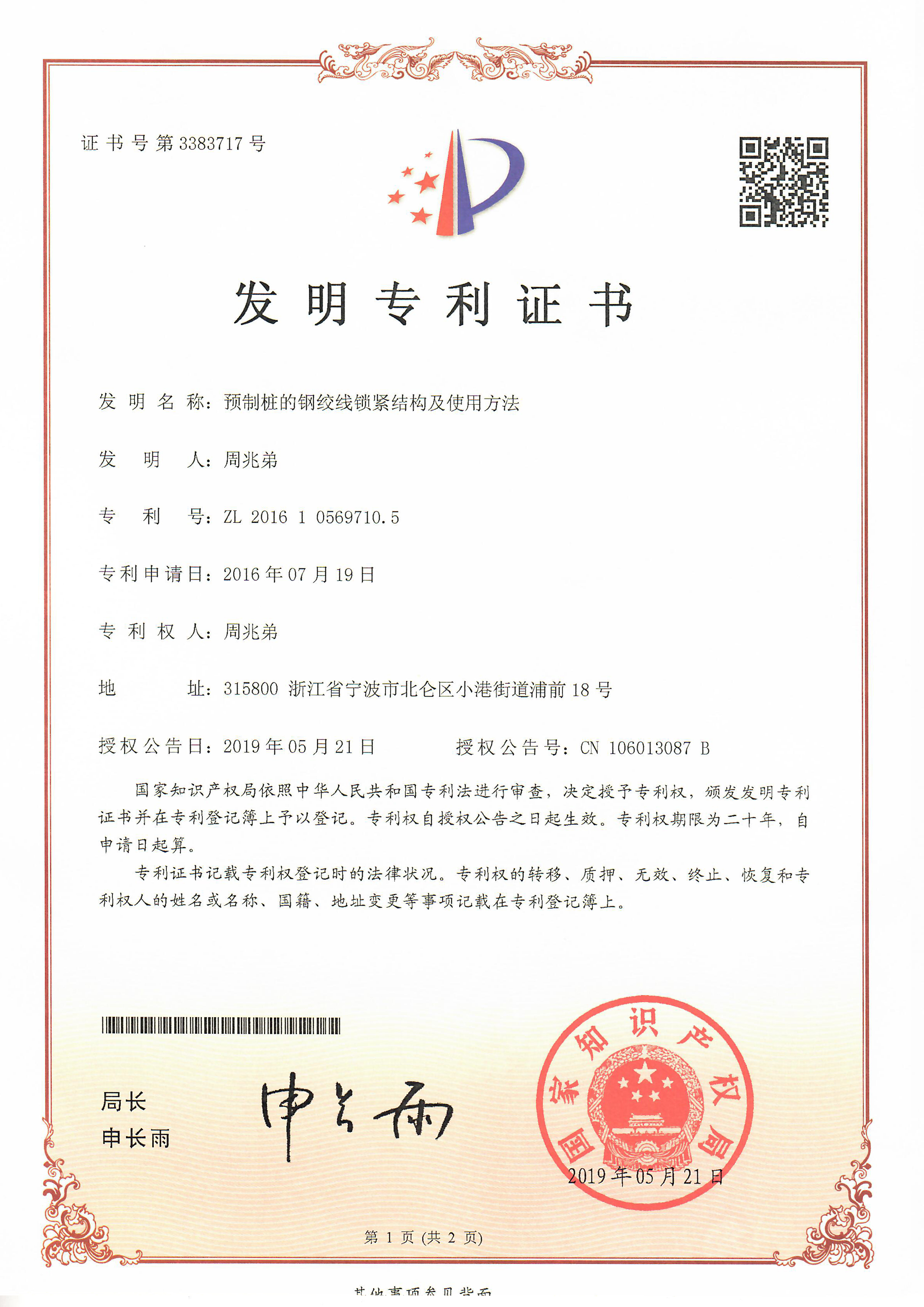 <p>自二十一世紀以來,兆弟堅持“智產創新為引擎”厚植企業核心競爭力,以“遠期、近期、現有、預防、封殺”十字方針推進落實專利工作,采用發明、實用新型、外觀設計相結合的方式圍繞樁類產品、裝配構件、智能裝備、施工解決方案等方面體系性申請了2000余項中國專利及PCT國際專利,為保持企業核心競爭力保駕護航。</p>